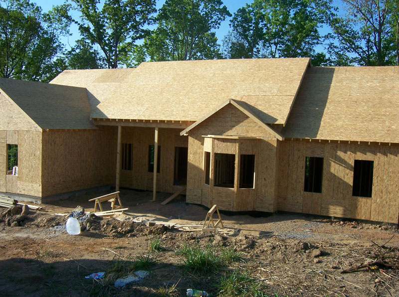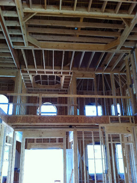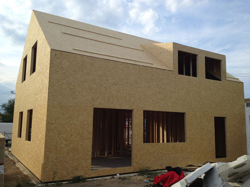 Podlaha u dvou podlažního domu je s profilů 60 x 240 mm po 500 mm na střed a je zaklopena OSB deskou 22 mm dvakrát jištěnou proti skřípání podlahy.